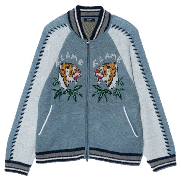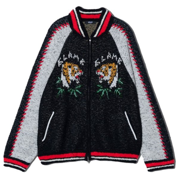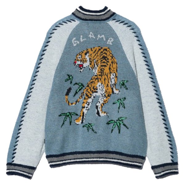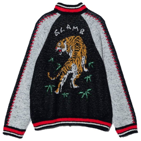 ジャガードで虎を使ったスカジャン柄にビーズを糸に通してライドンさせたなんともグラムらしい可愛さもある1品。