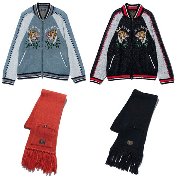 グラムよりAutumnコレクションで飛び抜けてオススメのニットスカジャンとポケットが付いた長めのレングスが遊び心を擽るマフラーが入荷です。