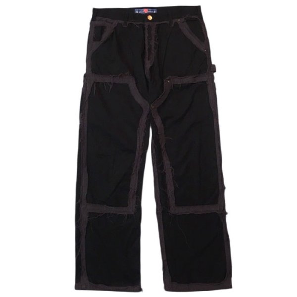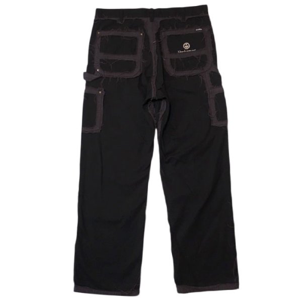 ペインターパンツはルーズフィットで、バックポケットにKAMIYAのピスネームとblackmeansのロゴを刺繍。