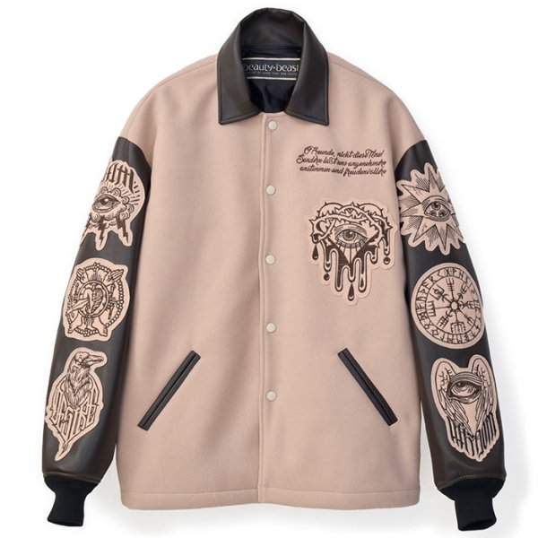 ジャケットは、ボディーにはメルトンを使用し、袖は切り返しにしたスタジャンデザインの1着。