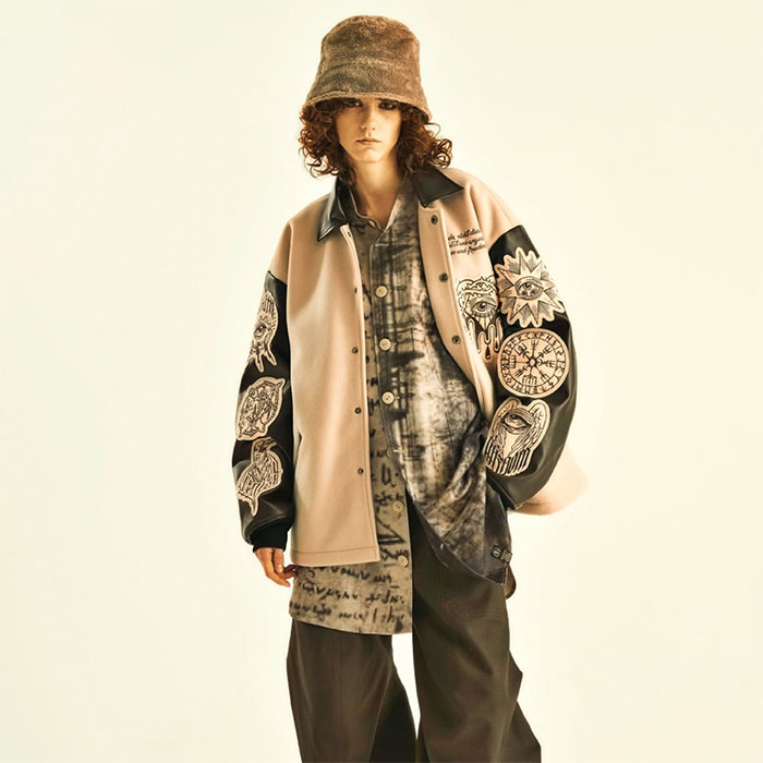 今回はスタジャンの様なコーチジャケットとふんわりとしたネルシャツ。
