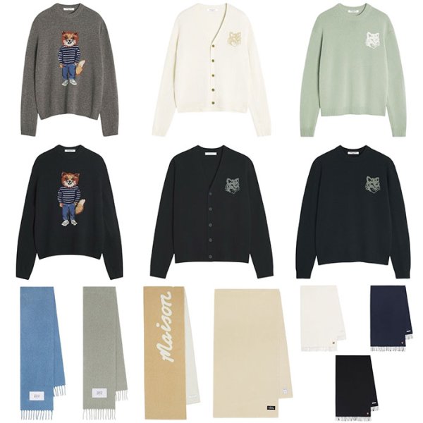 今回は、服を着たキツネがトレードマークのドレスドフォックスと少し大き目のフォックスヘッドが印象的なカーディガン、ニットセーター。