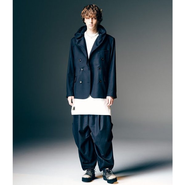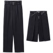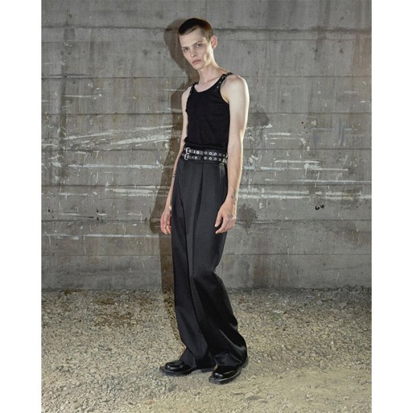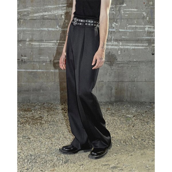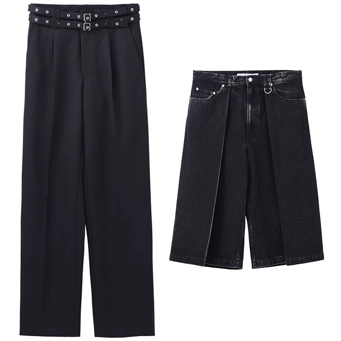 今年を象徴する様なダブルベルトデザインのスラックスはストレートシルエットの物。