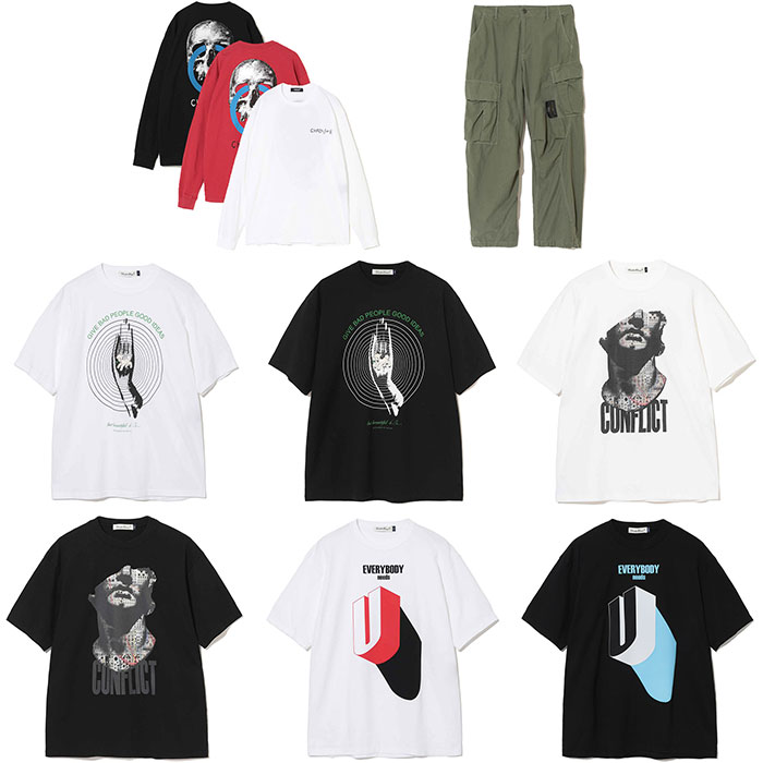 大人気のアンダーカバーより、ブランドではリーズナブルなグラフィックシリーズのロンTとTシャツ3型、そして遅れておりました曲線と立体的な構築がカッコいいカーゴパンツが入荷。
