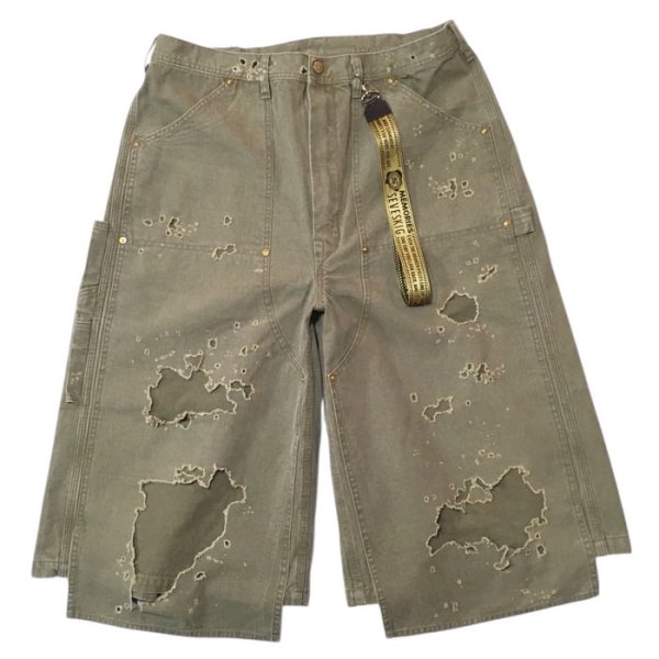 ・Damaged Double Knee Wide Bermuda Pants