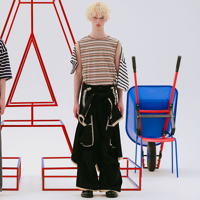 今回はSEVESKIGらしいオーバーかつワイドなデフォルメティックなシルエットと加工感が光ります。