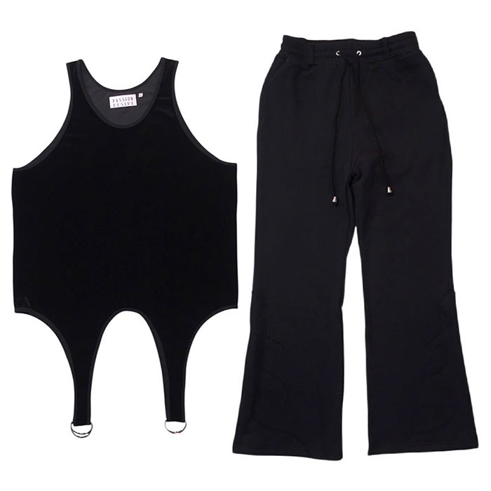パンツは、先日発売したジレとのセットで着用出来るスウェットパンツ。