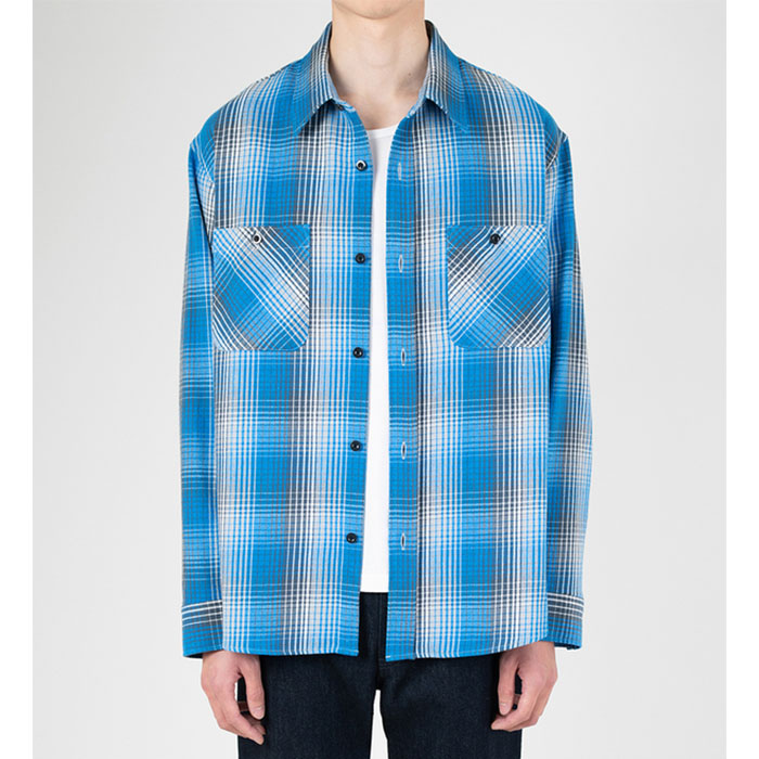 そんな推しのブルーのチェックシャツもラッドミュージシャンらしい一癖あるお色味のブルーチェックにて登場です。