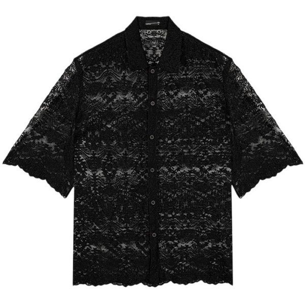 ・TULLE EMBROIDERY LACE SHORT SLEEVE SHIRT
