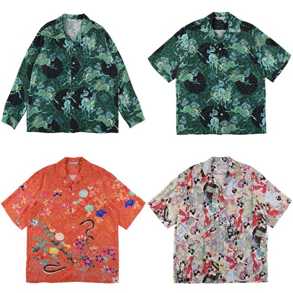 ・SILK CUPRO LONG SLEEVE ALOHA SHIRT (QILIN AND CHRYSANTHEMUM x VIRIDIAN)