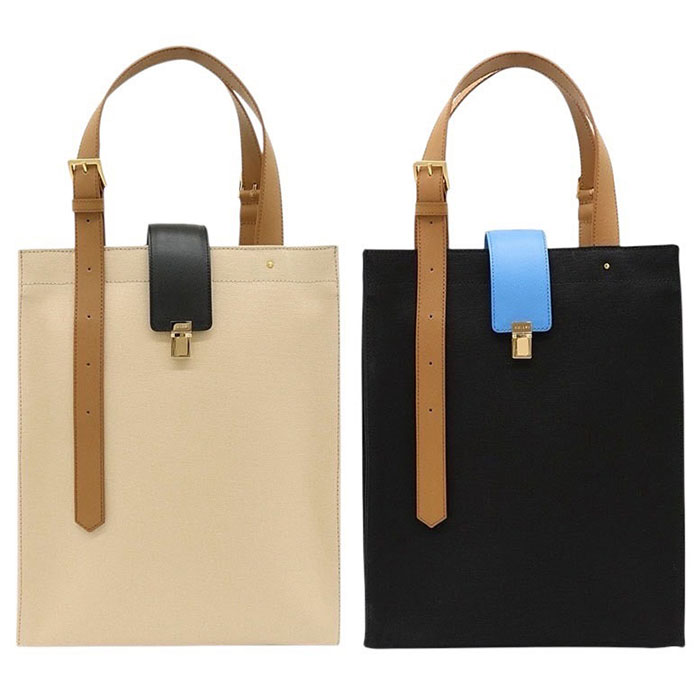 ・Leather Flap Adjustable Belt Canvas Tote (2色展開)