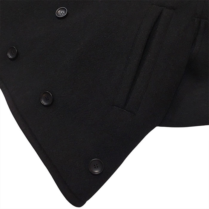 ・大きな衿が特徴的なヒップ丈のダブルブレストPコート