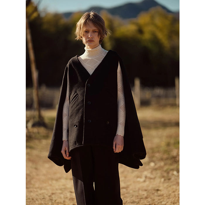 ・アームホールのスリットからケープの様な着こなしも可能