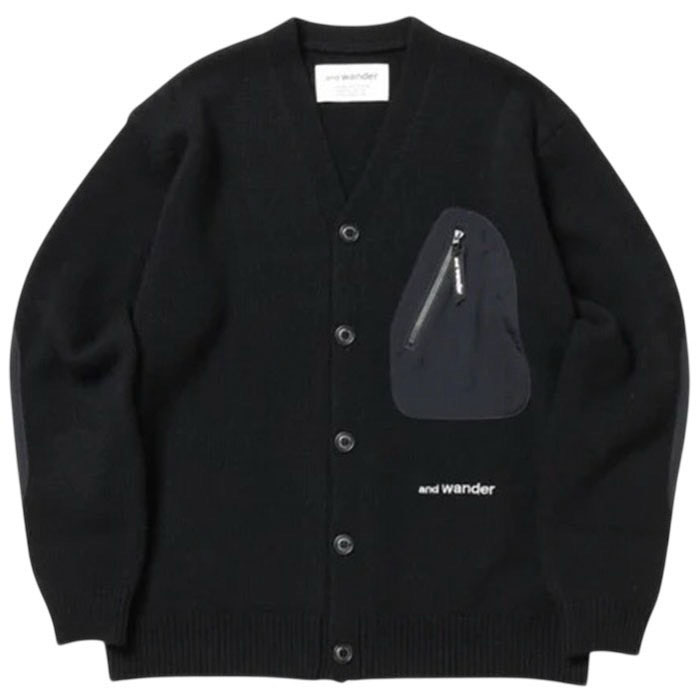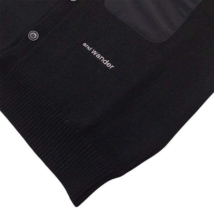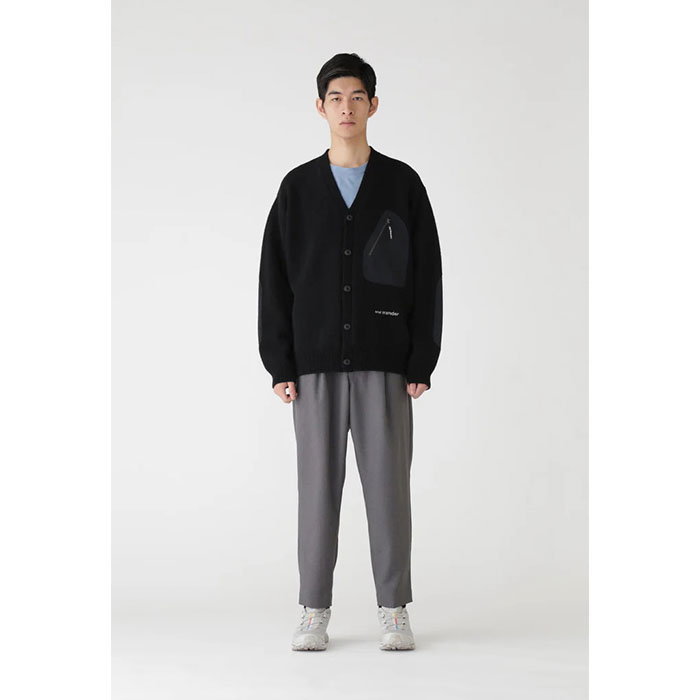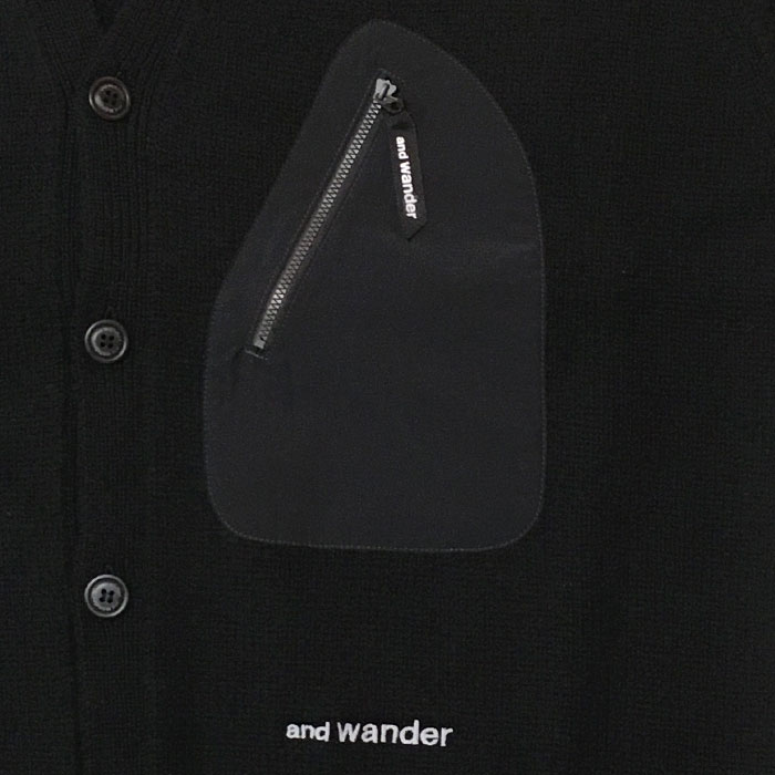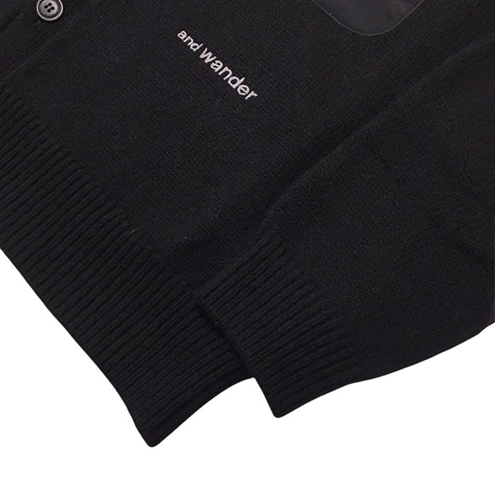 and wander アンドワンダー / Shetland wool cardigan (black)