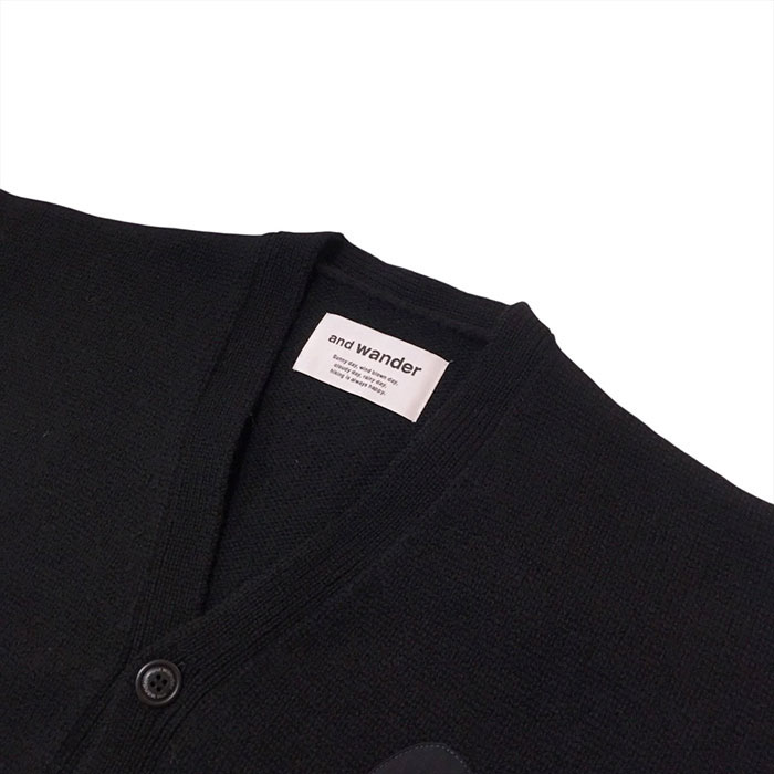 and wander アンドワンダー / Shetland wool cardigan (black) [andwander-5745284068]
