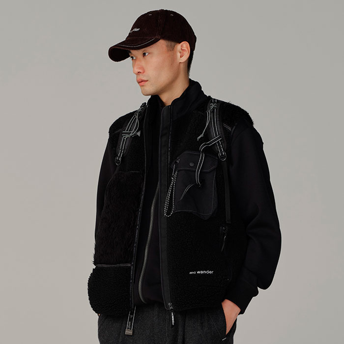 and wander アンドワンダー / Mix boa vest (black) [andwander-5745281058]
