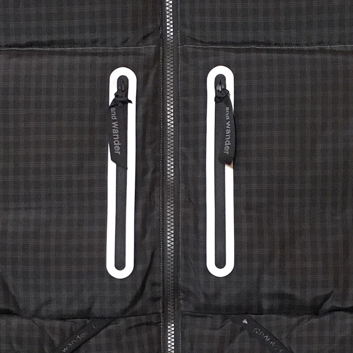 and wander アンドワンダー / x gramicci wool check down jacket (black) [andwander-5745231544]