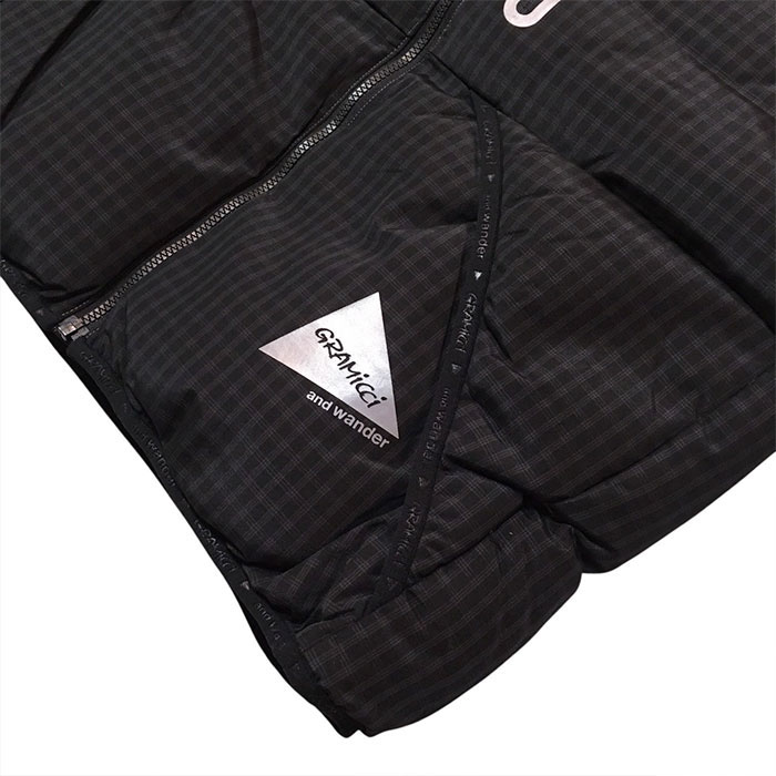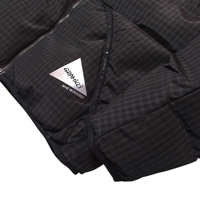 and wander アンドワンダー / x gramicci wool check down jacket (black)