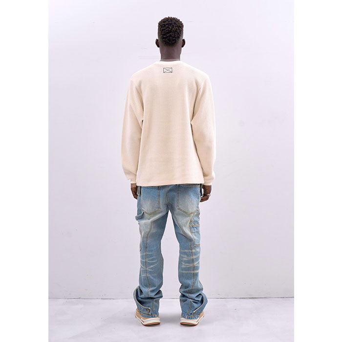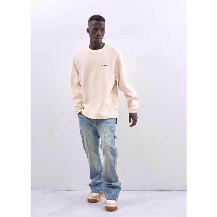深みのある凹凸が魅力のワッフル生地を採用し、優れた保温性と存在感を兼ね備えています。