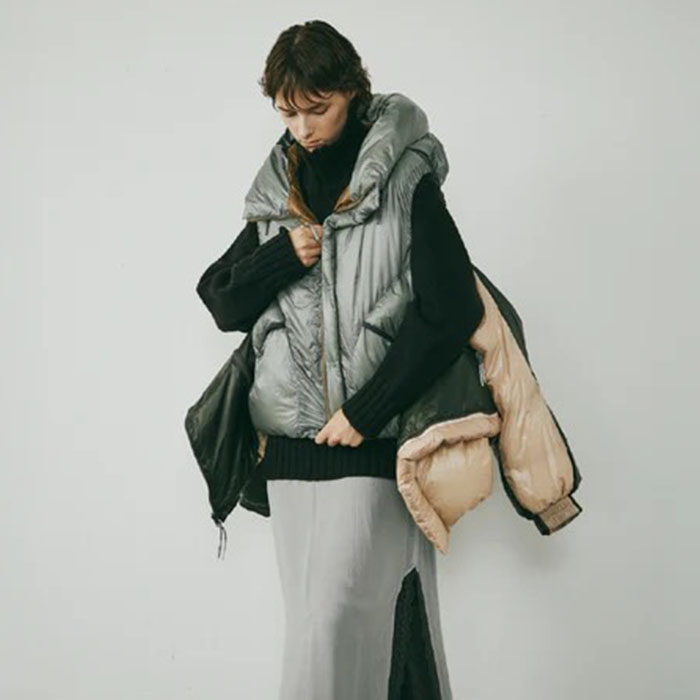 【UNISEX】beautiful people ビューティフルピープル / x NANGA multilayering down vest blouson (charcoal)