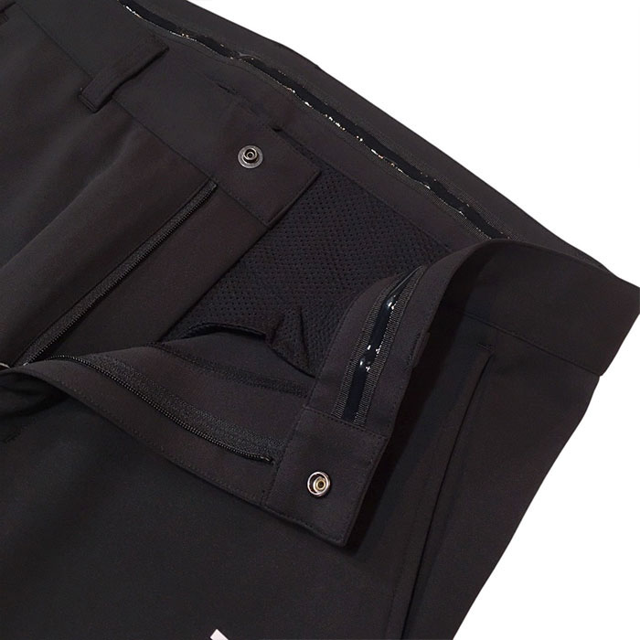 後ろウェストのループや後ろポケットのベルクロテープなど、ゴルフシーンに役立つ便利な機能が満載。