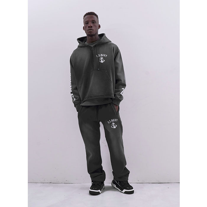 海軍を象徴するNAVYをモチーフにしたロゴをフロントと袖にプリント。