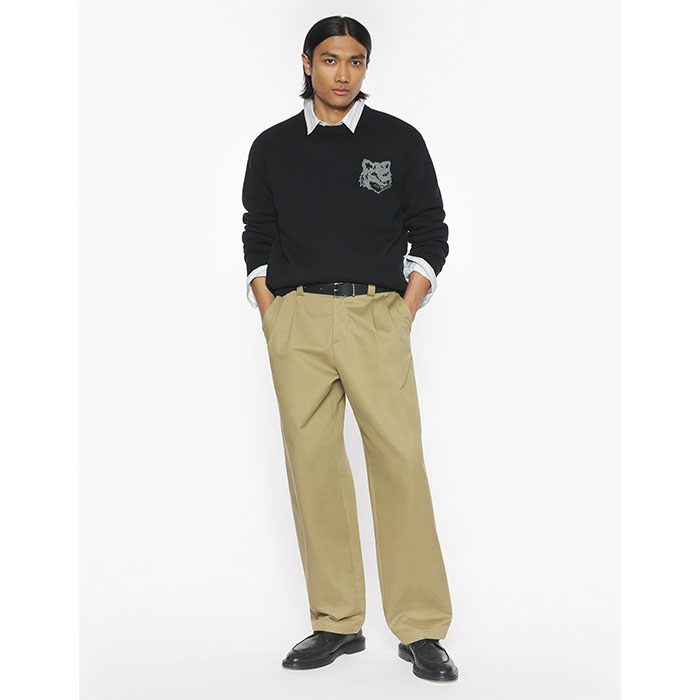 コンフォートフィットで、胸元にフォックス ヘッドのデザインがインターシャ編みで施されています。