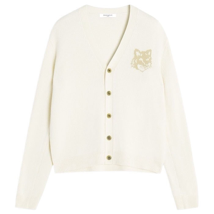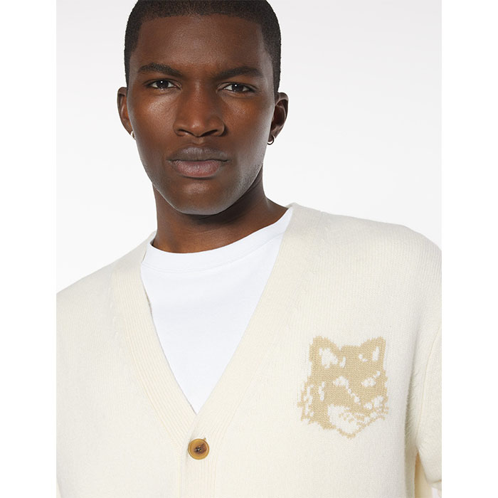 MAISON KITSUNE メゾンキツネ / FOX HEAD INTARSIA MERINO CARDIGAN (ecru x tan beige)