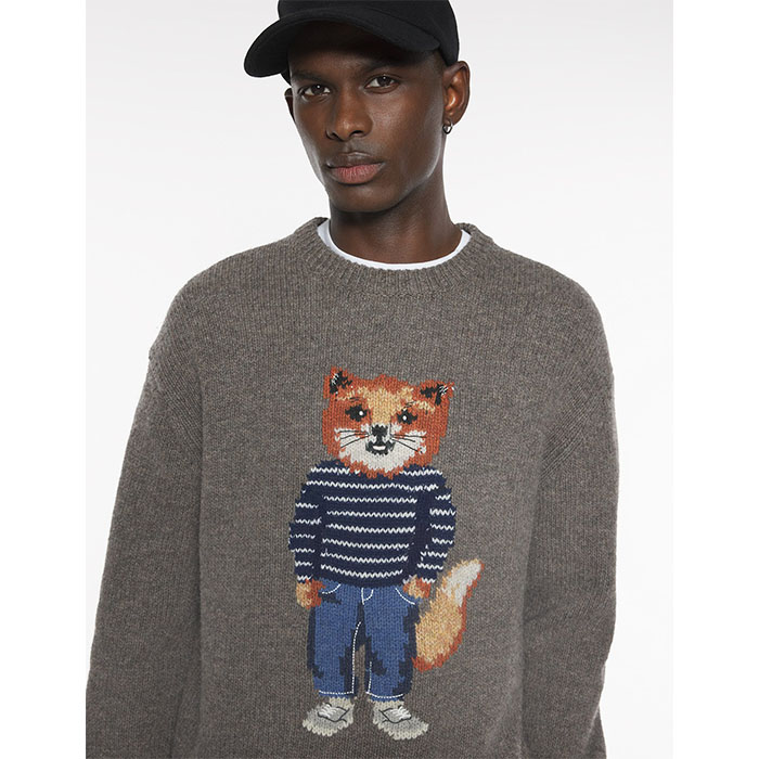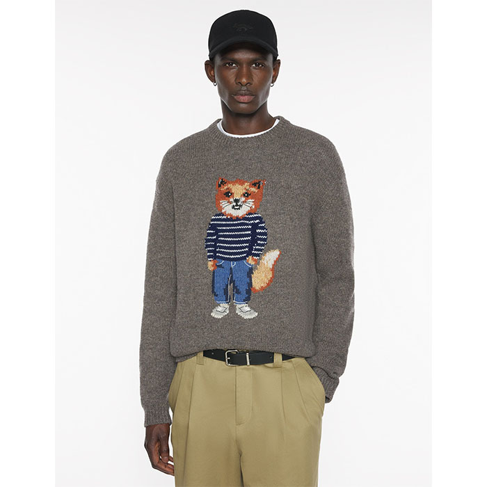 MAISON KITSUNE メゾンキツネ / DRESSED FOX INTARSIA WOOL JUMPER (dark grey melange)