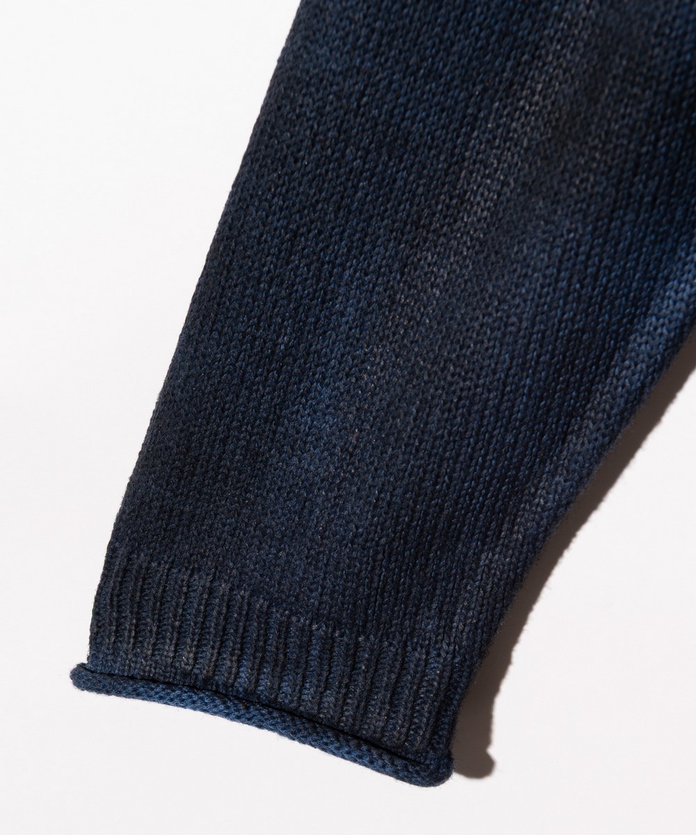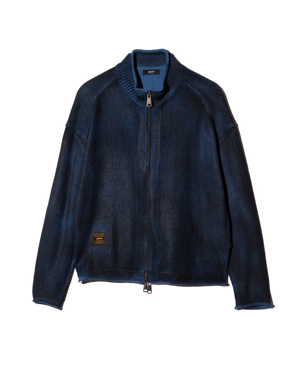 ニットマテリアルにワークウェアのエッセンスを掛け合わせて真新しいテクスチャを生み出したParaffin Coated Knit Blouson。モックネックを備えたボックスシルエットのボディは柔らかな肌触りのアクリルリリーヤーンを天竺編みしたもの。仕上げに国内のファクトリーでパラフィン樹脂をスプレー、丹念なハンドプレスを施して、オイルドジャケットのような艶をまとわせました。着込むほどに表面加工がこなれていく経年変化も本加工の魅力。大ぶりなフロントジップもラギッドなムードを強調しながら、肩線をフロントに出すことでニットならではの表情も持たせました。