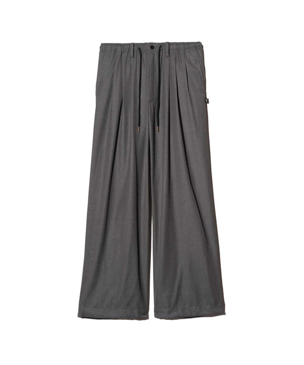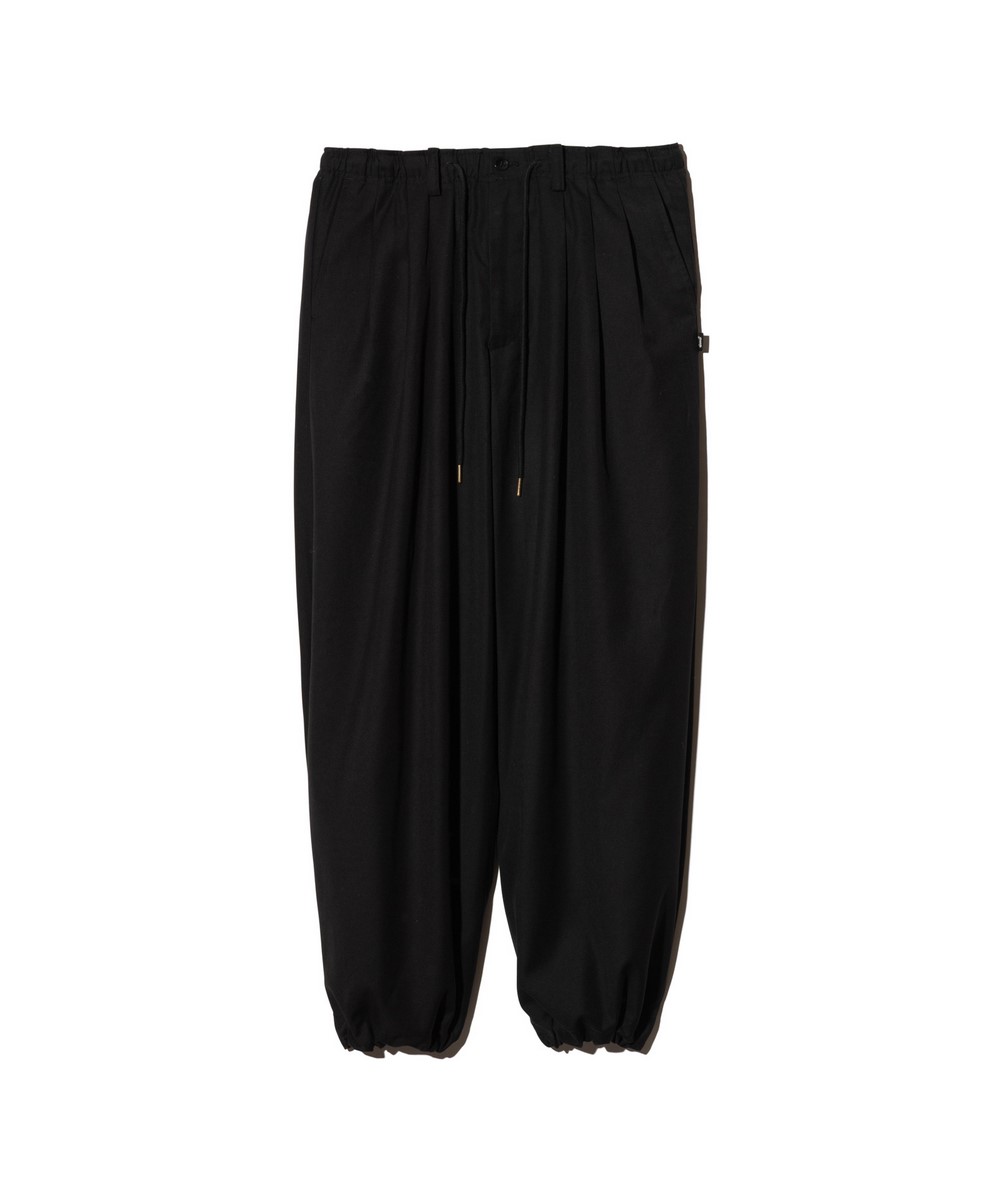 スラックスにブランドならではの自由なスポーツミックスを掛け合わせたAdjustable Balloon Slacks。テキスタイルにレーヨン混の落ち感あるスーツ生地を用いながら、ボディは左右6本ものタックでバルーン状に構築したバギーシルエットに。ウエストのドローコード仕様に加え、ゴム仕様の裾はスピンドルで幅調整が可能となっており、シチュエーションやコンディションに合わせて着心地をアレンジいただけます。