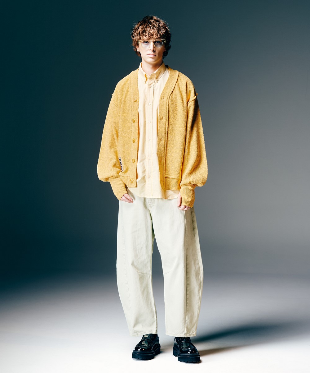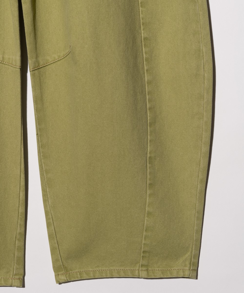glambの独創的なワイドシルエットメイキングをカラーコーディネートで提案するColor Barrel Denim。バルーン状のシルエットは丸みを帯びた輪郭に合わせて前身頃を2パネル使いで構成。さらに裾内側にダーツを加えた立体的なパターンによって表現しています。4色展開となるカラーバリエーションはいずれもアッシュがかった色調で展開。アイコニックなルックスだからこそ、プレーンなトップスと合わせた抜け感あるスタイリングがおすすめです。