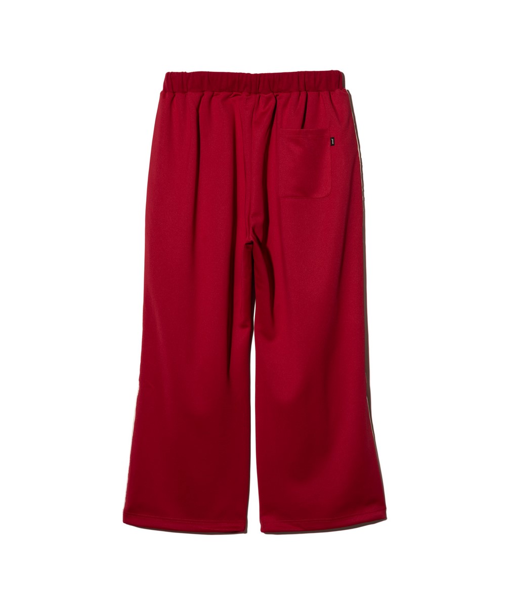 トラックジャージセットアップをシルエットメイキングでアーバンストリートにアレンジしたTurtleneck Oversize Jersey Set Up。アームに2本ラインをあしらったデザインはスポーツスタイルの定番ながら、その首元をボリュームあるタートルネックに変更することで柔らかなインテリジェンスを乗せました。ラグラン仕様のボディはレングスをショートに設定。裾リブも省いたストレートなシルエットが抜け感ある佇まいを形作ります。ボトムスは膝元に2タックとってボリュームを付けたワイドシルエット。裾にドローストリングを備えておりストレートからテーパードまでお好みのラインにアレンジいただけます。腰元には小物を吊り下げられるDカン、左右のポケットもジップ仕様にしてユーティリティを向上。ワンマイルからタウンユースまでシーンを問わずにご着用いただけます。