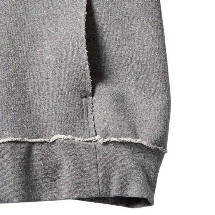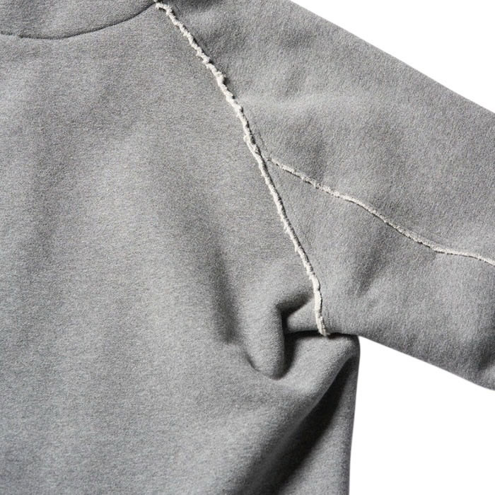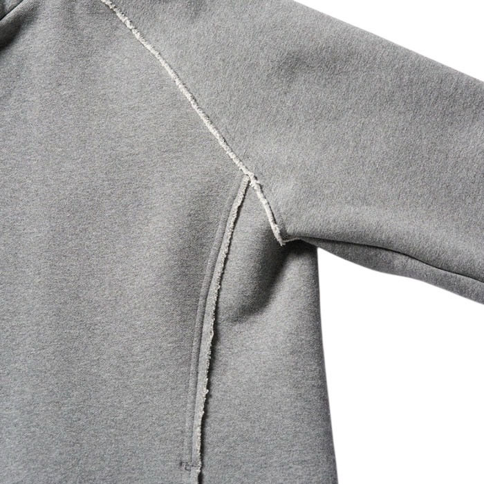 素材を考慮した独自のカッティングや附属使いにより、ミニマルな外観を維持しつつもやり過ぎないデザインアクセントを生みだしているラグランスリーブパーカー。