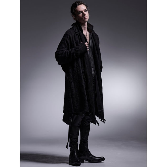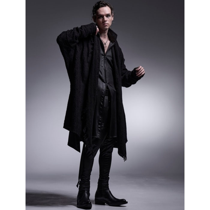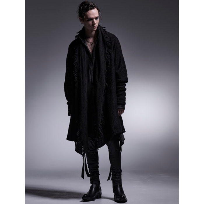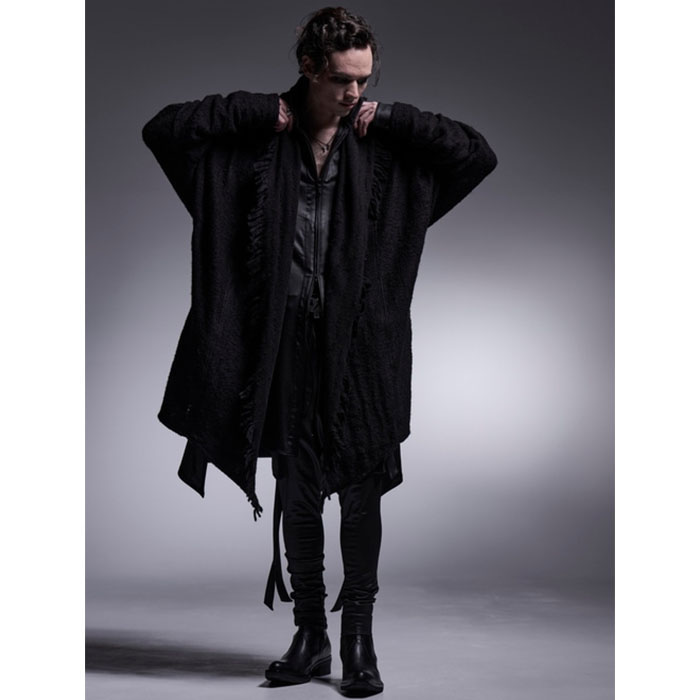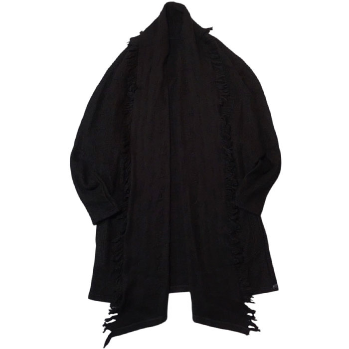 kiryuyrik キリュウキリュウ / Border Dolman Fringe Cardigan (black x black) [kiryuyrik-KU-HY60-150]