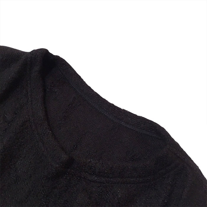 又、肩幅やアームホールはわざと大きく作らずにブランドらしいシルエットを構築する事によりトップスでも使い易く、インナーではごわつかない適度な袖の作り方が特徴となって下ります。