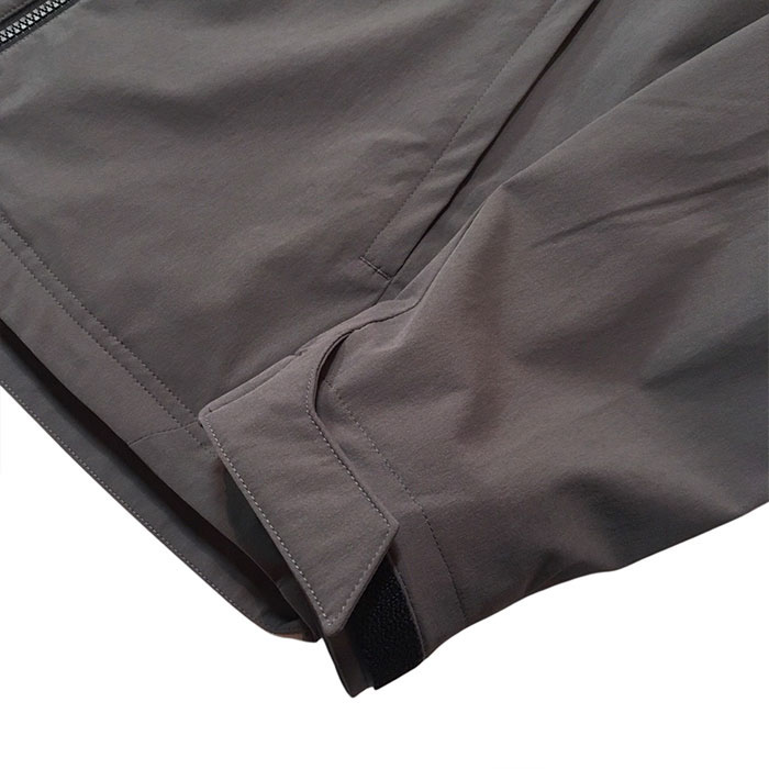 袖口のタブや裾のスピンドルでフィット感や温度調整が可能。