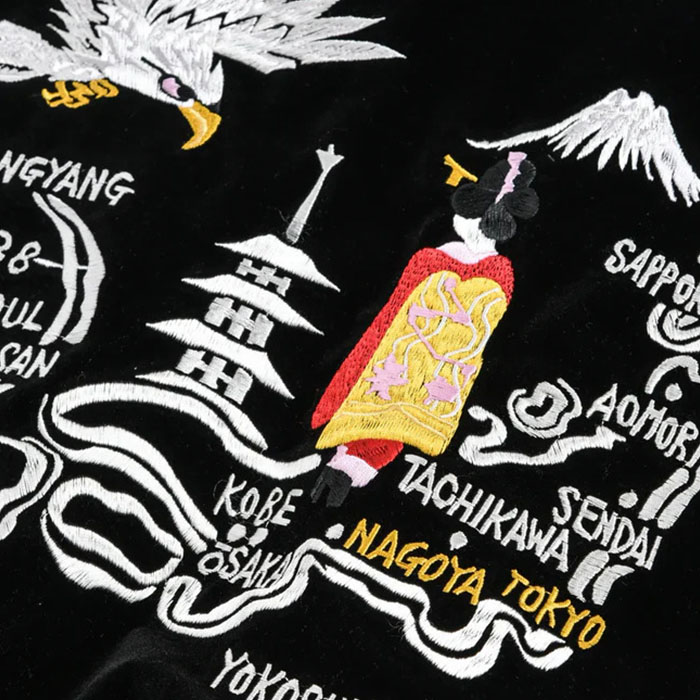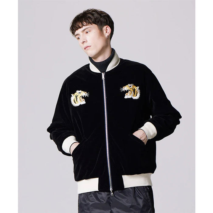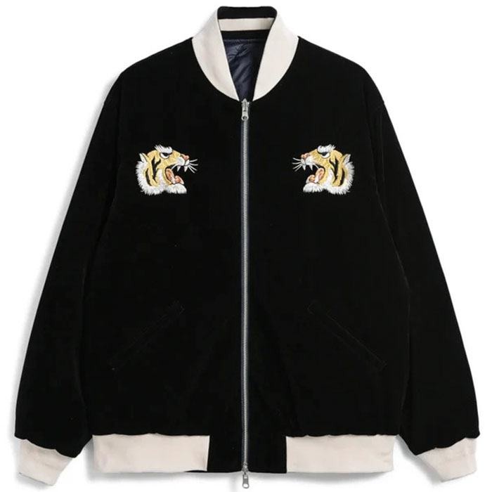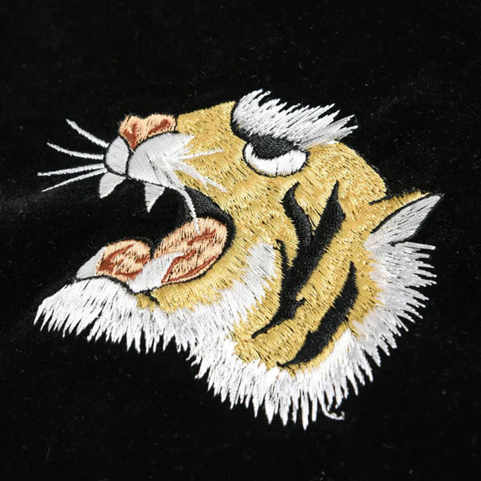 ・表地には、ベロア生地に前後スカジャン風の刺繍を入れています。