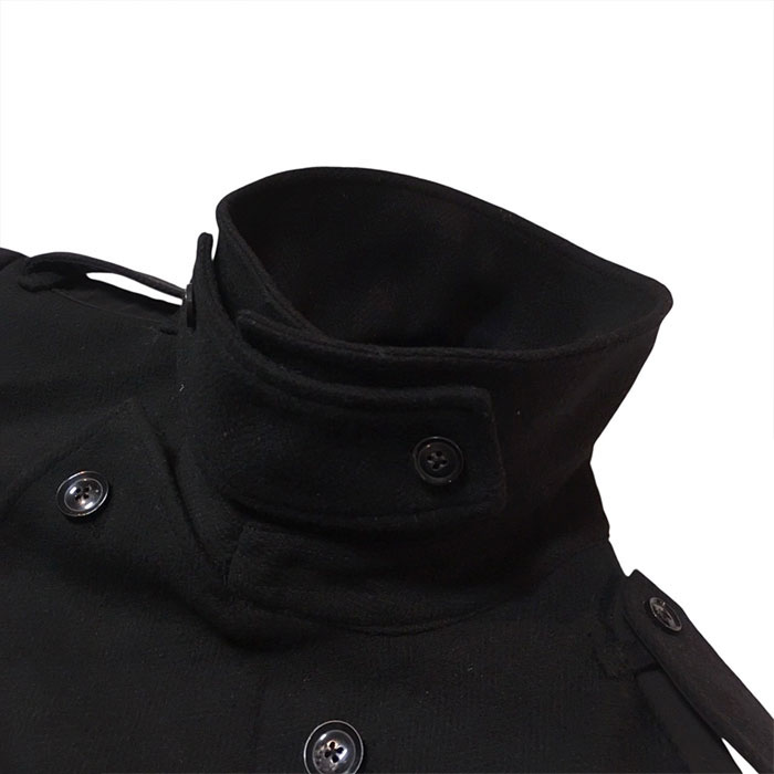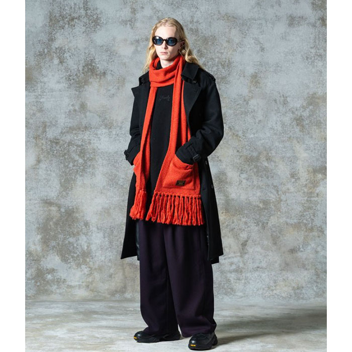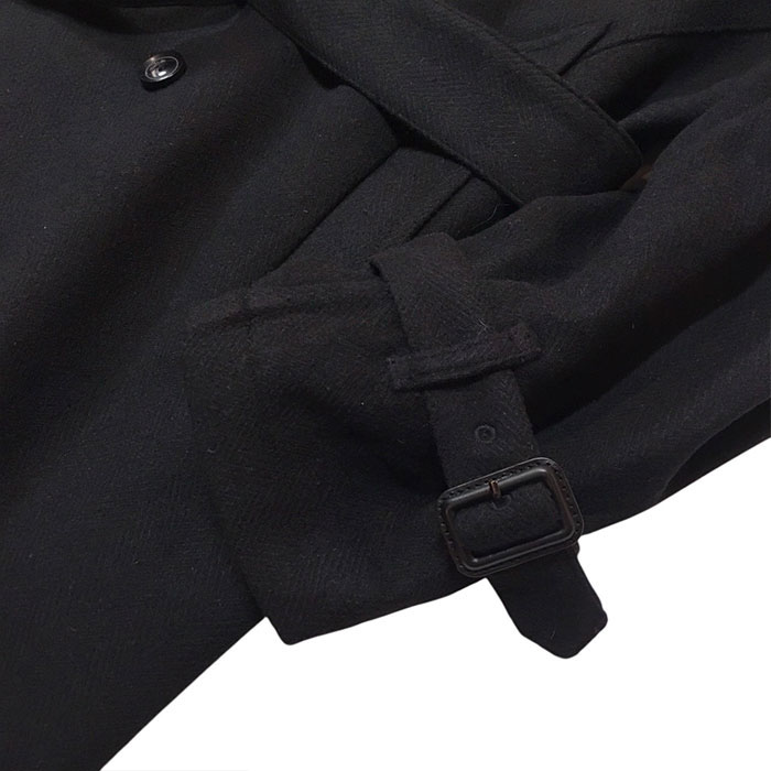 足元まで着用者を覆うロングシルエットがクラシカルなコートスタイリングを形作るBig Trench Coat。アンブレラヨークや袖口のストラップ、ウエストベルトなどトレンチコートのヒストリカルなディテールは踏襲。テキスタイルにはウール50%の上品な風合いを備えたヘリンボーン生地を用い、オーバーサイズのフィッティングもアンティークのような佇まいを形作ります。首元のかぎフックやチンストラップはスタイリングや天候に合わせてスタンドカラーへのアレンジを可能に。glambがブランド設立以来、グランジと共に着想にしてきた放浪のイメージも彷彿とさせる1着です。