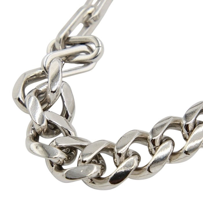 異なるチェーンをミックスさせたブレスレット。