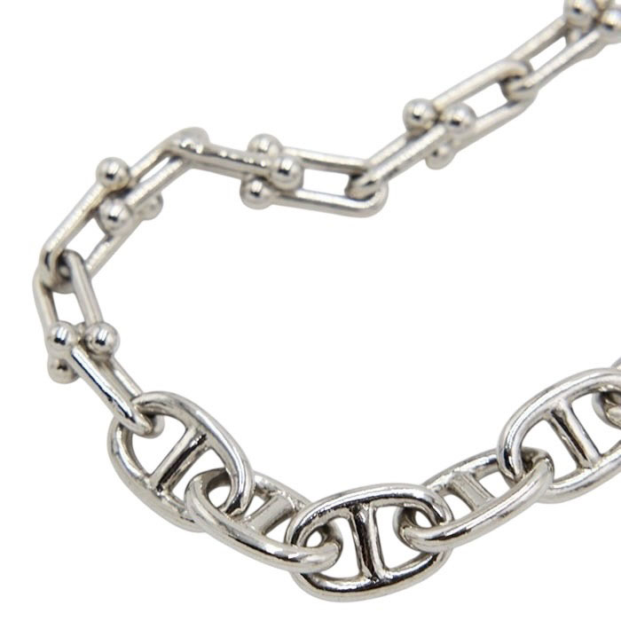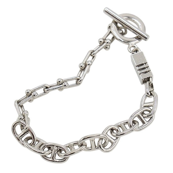 異なるチェーンをミックスさせたブレスレット。