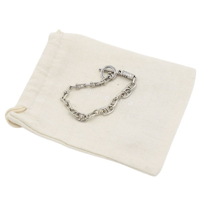 マンテルタイプの留め具を採用したため着脱もしやすく、ブランドロゴのネームパーツを組み込んだブレスレットとなっております。
