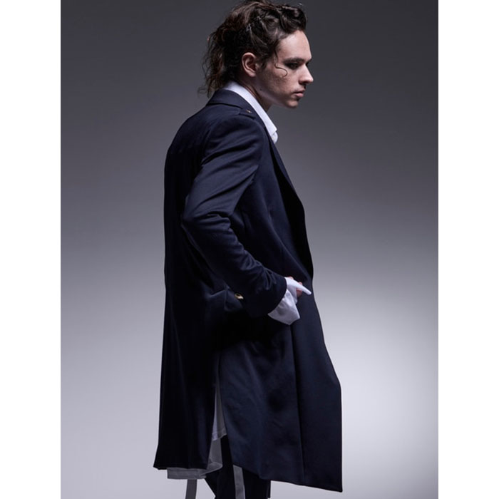 kiryuyrik キリュウキリュウ / Kersey Jersey Epaulet Peacked Long Jacket (navy)
