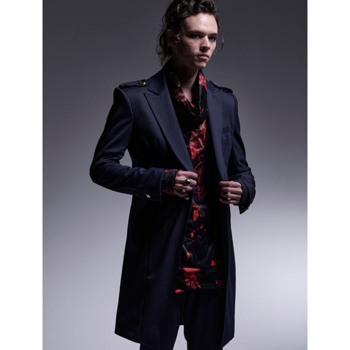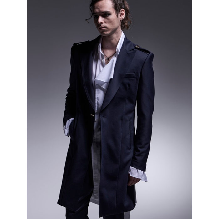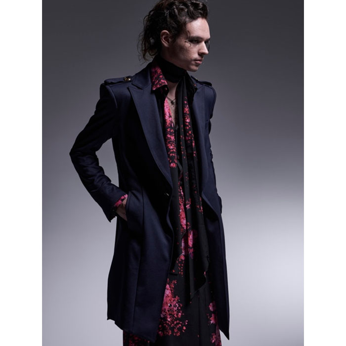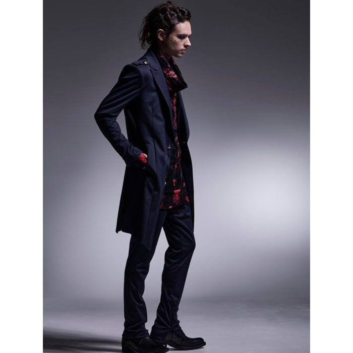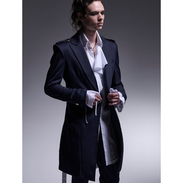 kiryuyrik キリュウキリュウ / Kersey Jersey Epaulet Peacked Long Jacket (navy) [kiryuyrik-KU-HJ71-906]