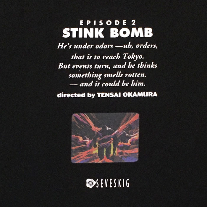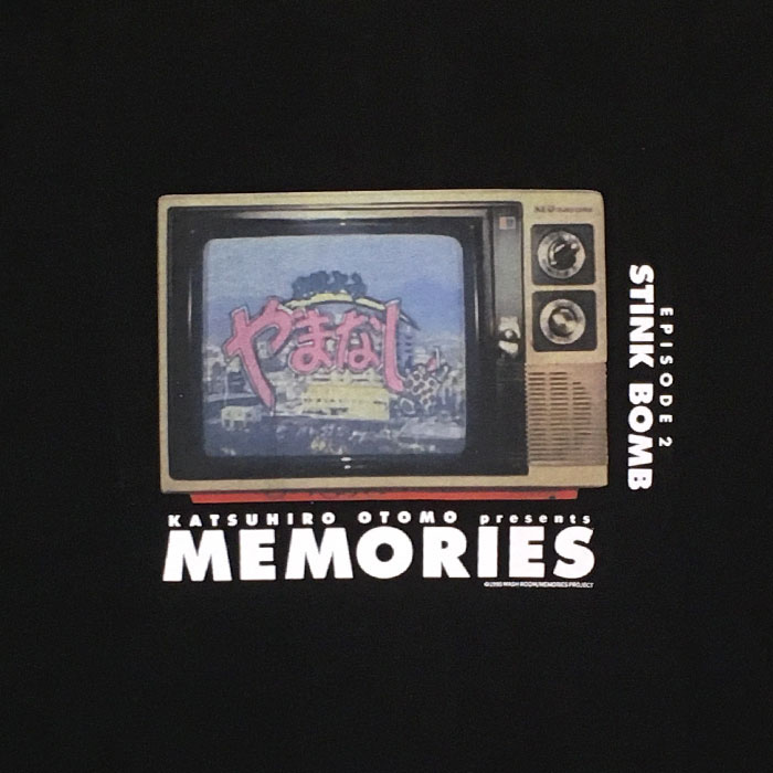 『MEMORIES』EPISODE.2「最臭兵器」冒頭のローカル番組「おはようやまなし」のオープニングを思い出させるS/SLシャツ。