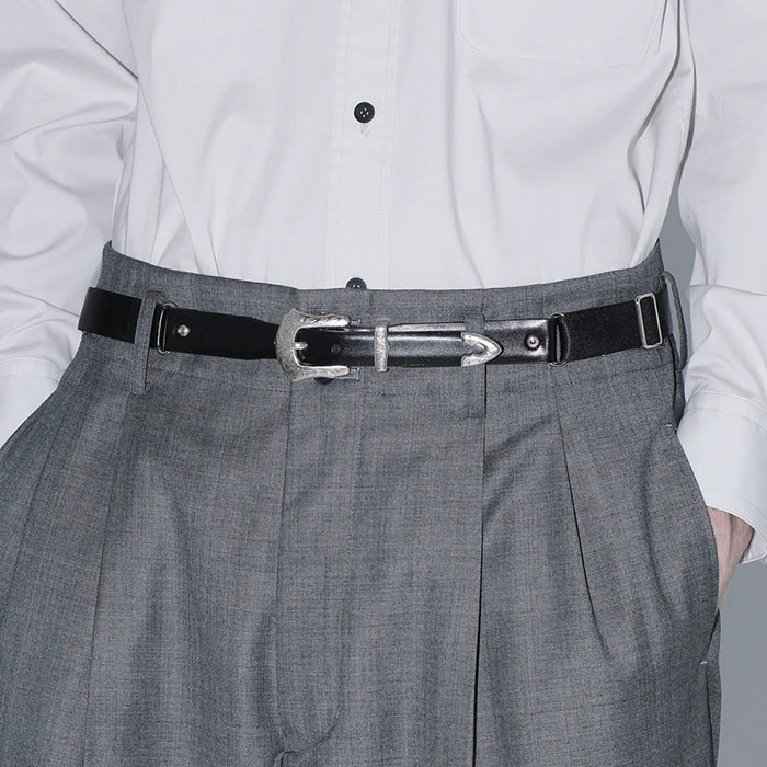 タックインやメッシュ、レースアイテムとの組み合わせでもアクセントになるので、ウエスト調整の為のベルトだけではなく、アクセサリー感覚としてもお考え頂ける1本。