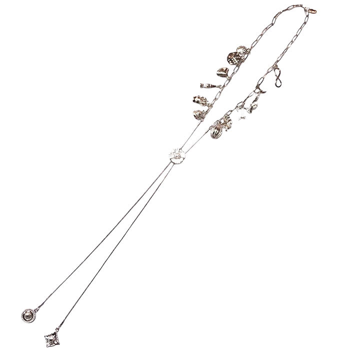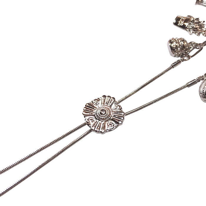 メタルモチーフで首元を華やかに構築したループタイデザインのネックレス。