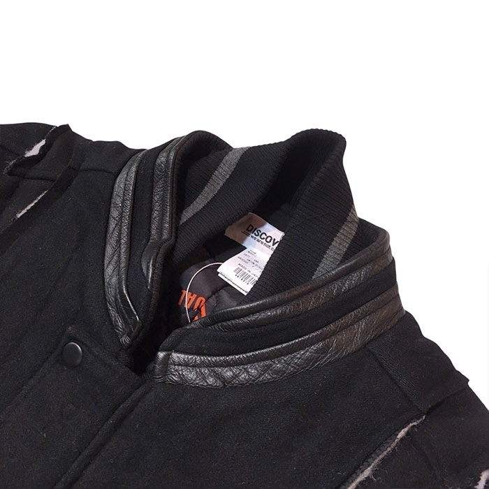 古着、ヴィンテージの2枚の異なったスタジャンを解体した後、再構築されたパッチワークドッキングスタジャン。