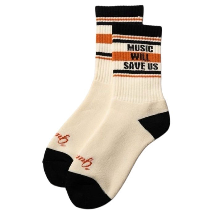 glambの音楽への思いをメッセージとしてあしらったMusic Lover Socks。肉厚な編地を用いたボディは安心感あるフィットをもたらす仕上がり。レトロなカラーリングは秋冬にはボトムスでの差し色として、春夏にはショーツ×スニーカーといった組み合わせなど、幅広いスタイリングにアクセントをもたらしてくれるでしょう。