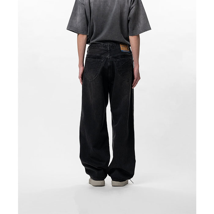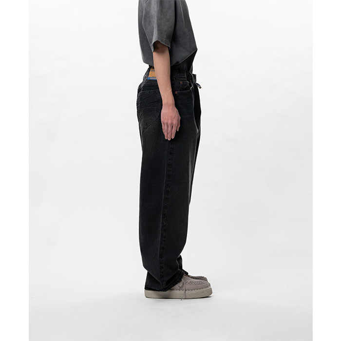 in・stru(men-tal). インストルメンタル / HARD WASHED SELVAGE DENIM BAGGY PANTS (black)